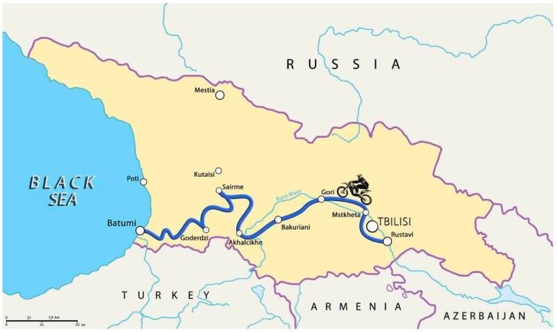 Diese Tour ist keine gewöhnliche Enduroreise – sie ist ein intensives Erlebnis für Körper, Geist und Seele. In zehn Tagen durchqueren wir ganz Georgien – von den trockenen, kargen Halbwüsten im Osten über alpine Hochgebirgsregionen, dichte Wälder, reißende Flüsse und weite Almwiesen bis hin zu den subtropischen Küsten des Schwarzen Meeres.